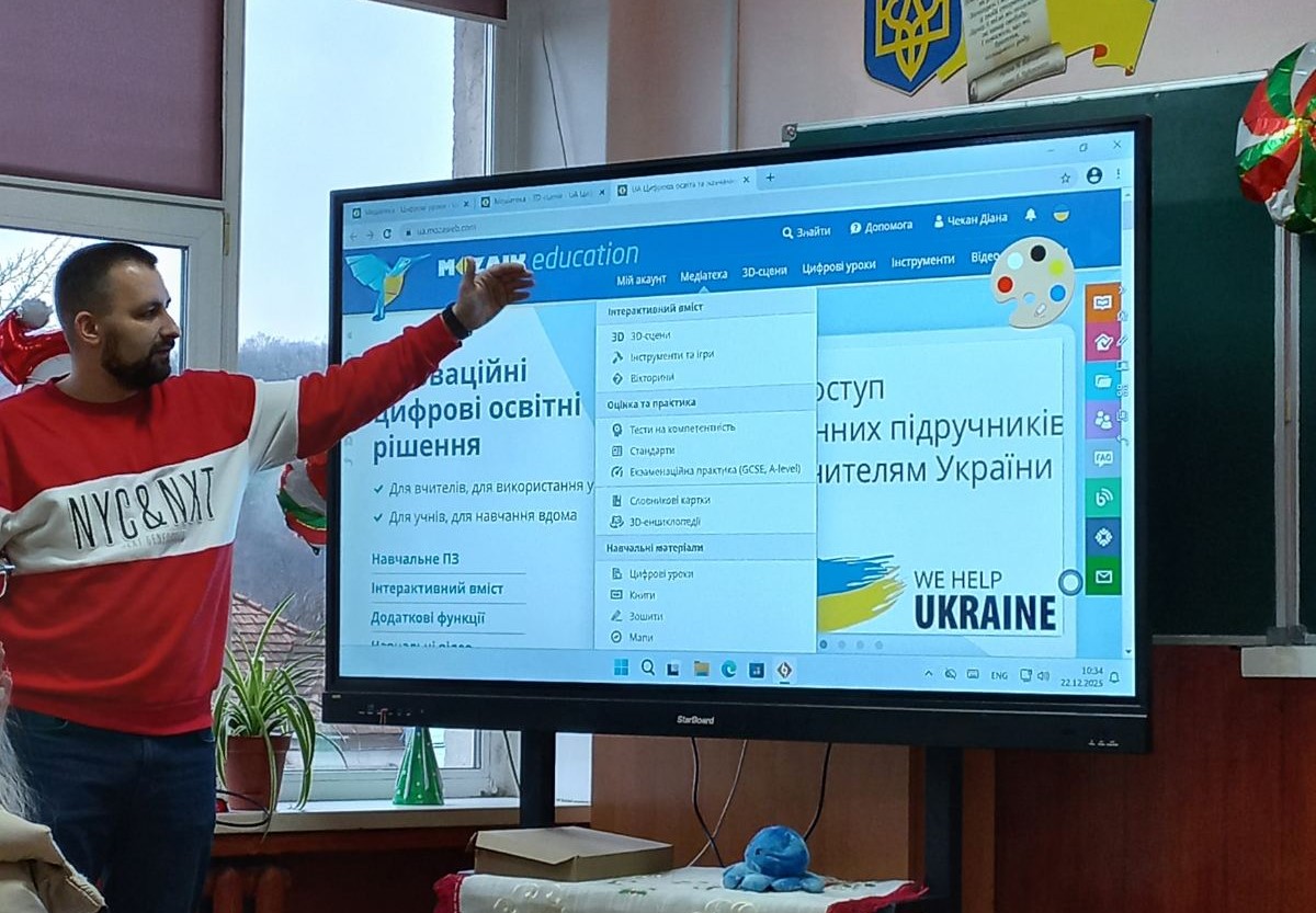 Важливою частиною заходу стало знайомство з платформою Mozaik Education. Учителі опанували пошук електронних підручників, використання навчальних матеріалів і можливості Mozaik 3D. Демонстрація інтерактивних 3D-моделей та міні-вікторин показала ефективні інструменти для кращого засвоєння матеріалу учнями.